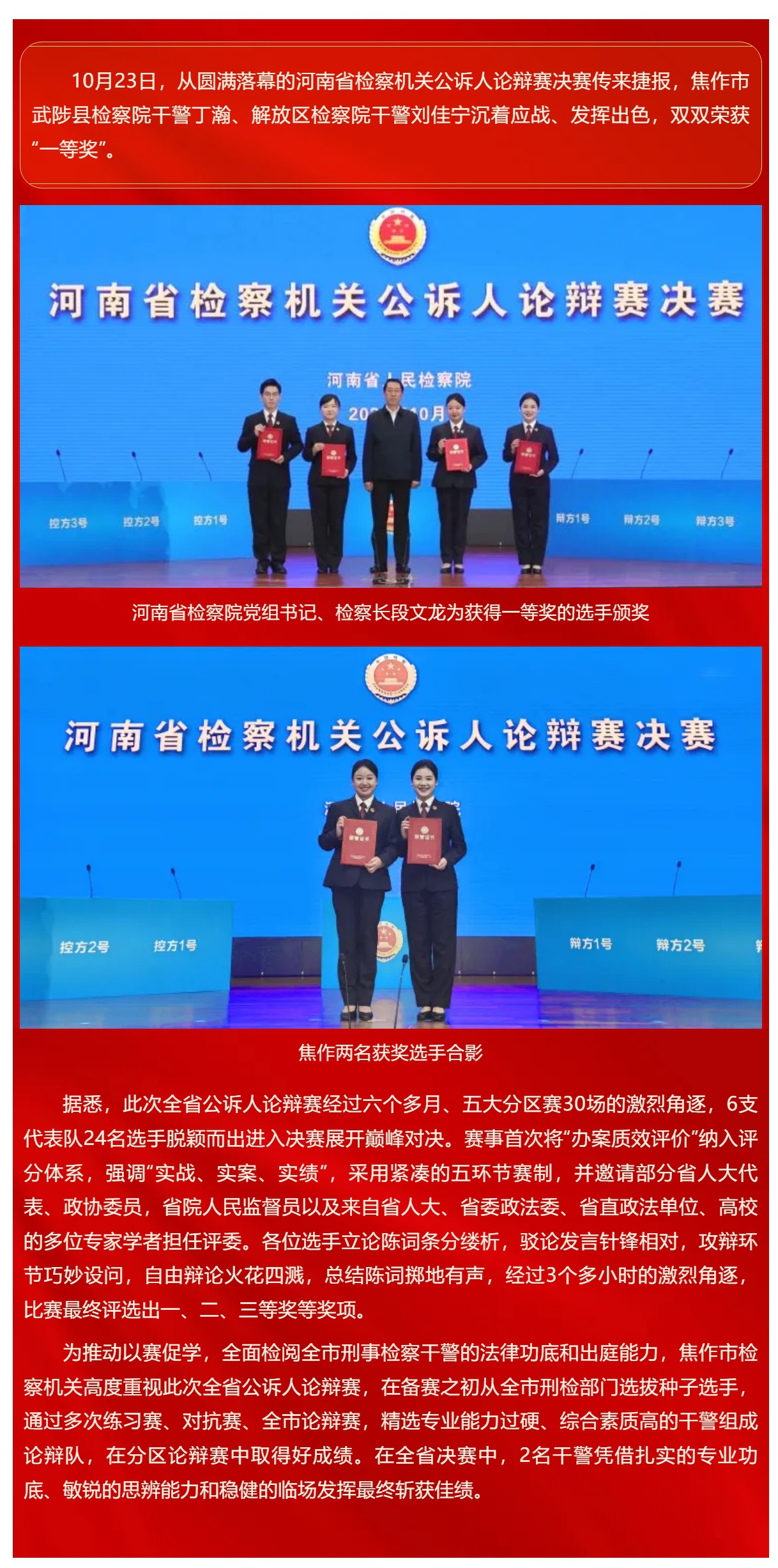 真棒!焦作2名干警在全省公诉人论辩赛决赛中荣获一等奖